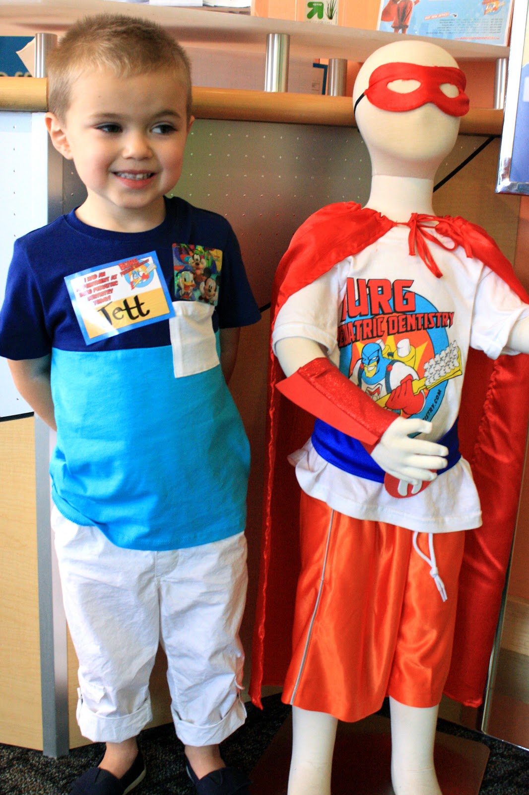 Burg has a cute theme of Super heros in all their locations. At each appointment they get a different piece of a super hero costume. At his first appointment Jett got a cape and he can’t wait to go back to his next appointment to get the next piece of the costume!