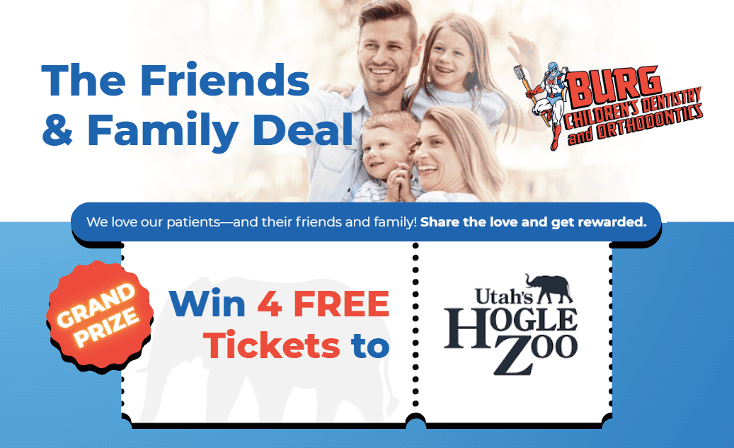 - Enter a friend(s) or family member(s) to Burg Children’s Dentistry and Orthodontics = 5 Entries/referral